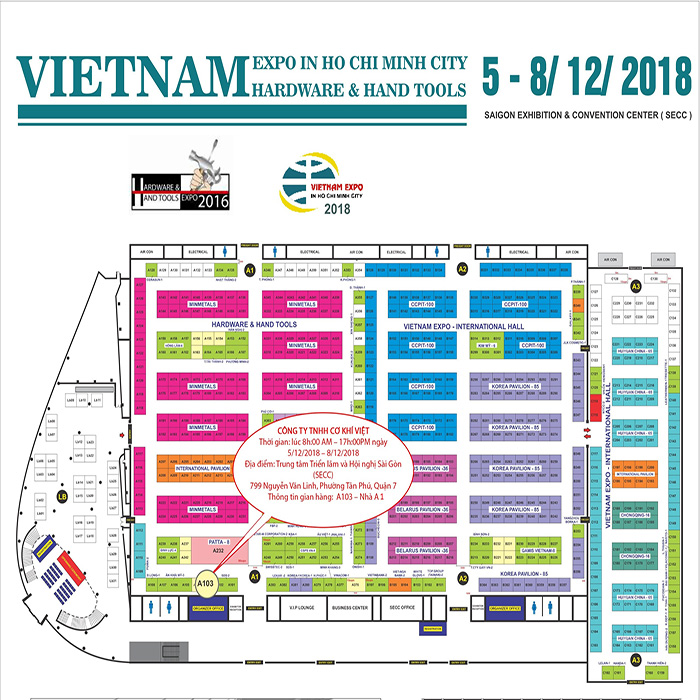 CÔNG TY TNHH CƠ KHÍ VIỆT- Trân trọng kính mời Quý Khách Hàng đến tham quan Triển Lãm SẢN PHẨM NGŨ KIM & DỤNG CỤ CẦM TAY 2018 VIỆT NAM diễn ra duy nhất một lần trong năm tại Trung tâm Triển Lãm SECC TP. Hồ Chí Minh. Với sự góp mặt của hơn 250 doanh nghiệp đến từ hơn 18 quốc gia và vùng lãnh thổ